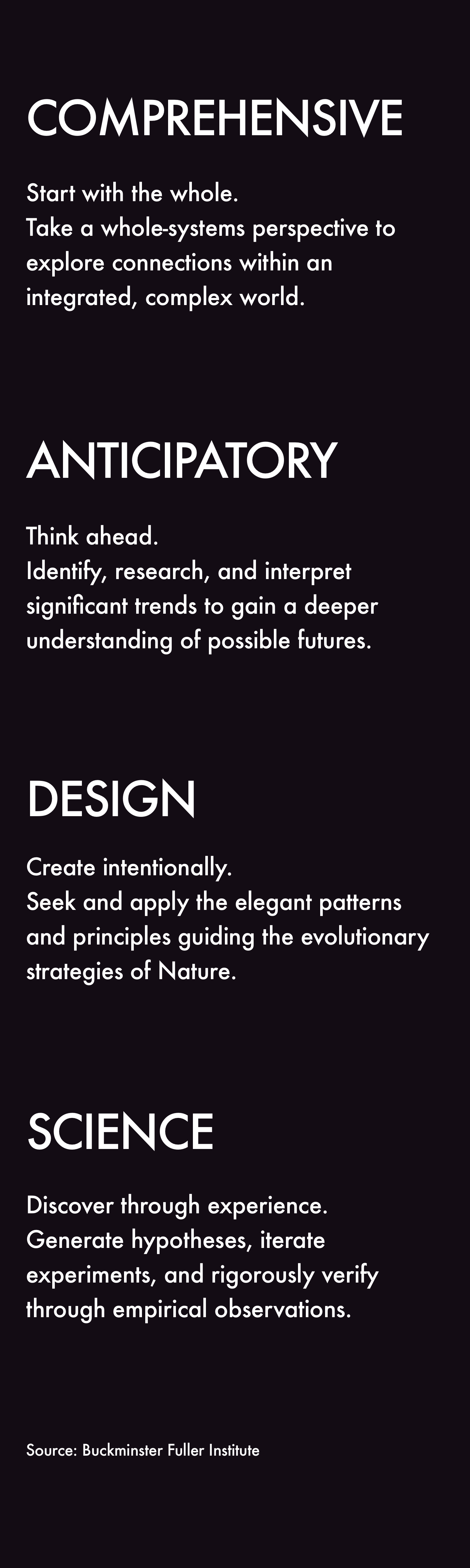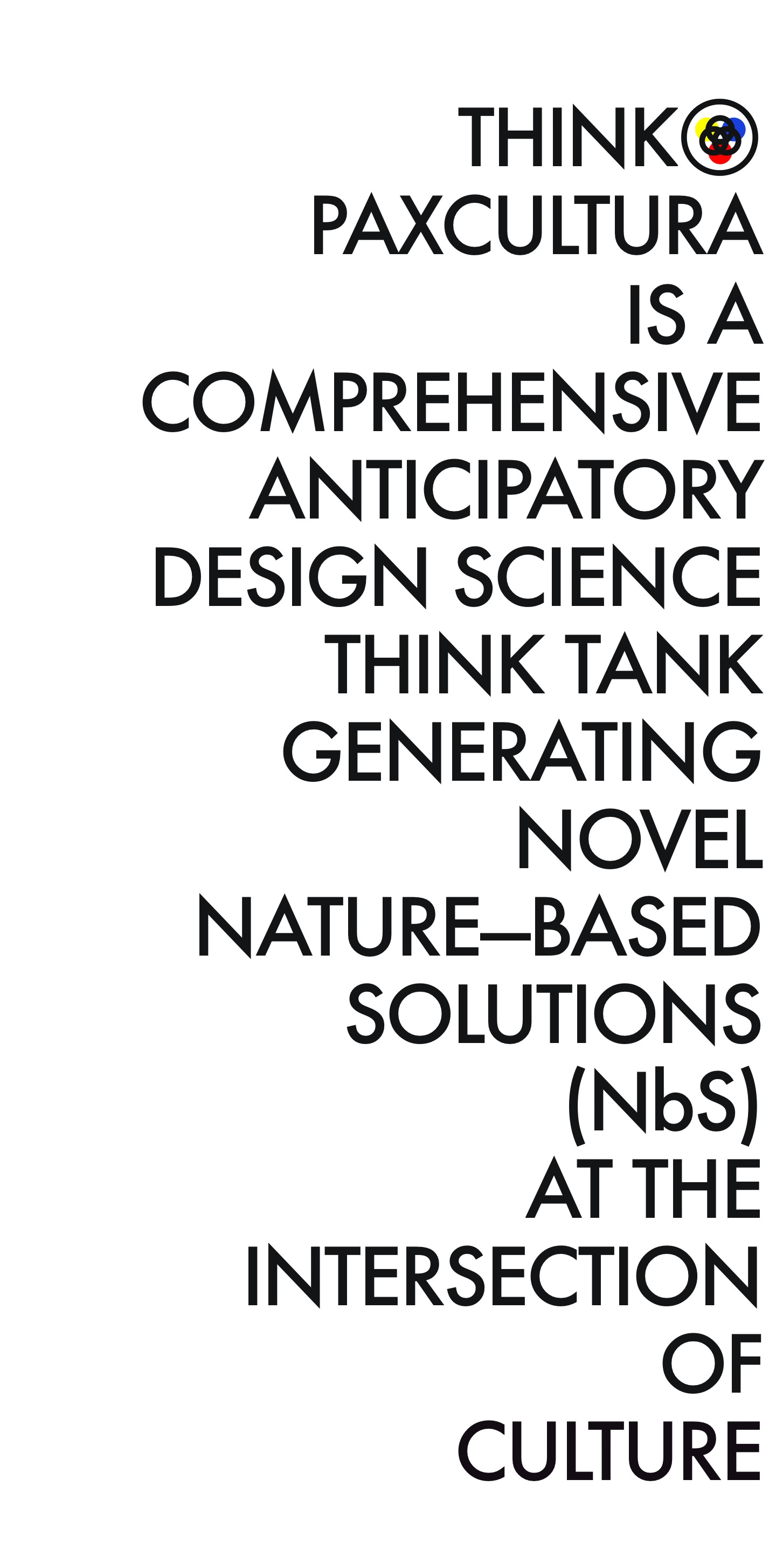 COMPREHENSIVE ANTICIPATORY DESIGN SCIENCE THINK TANK Generating novel Nature-based Solutions (NbS) at the intersection of Culture. Inspired by R. Buckminster Fuller's World Design Science Decade (1965-1975) for 'Man and Biosphere.'
